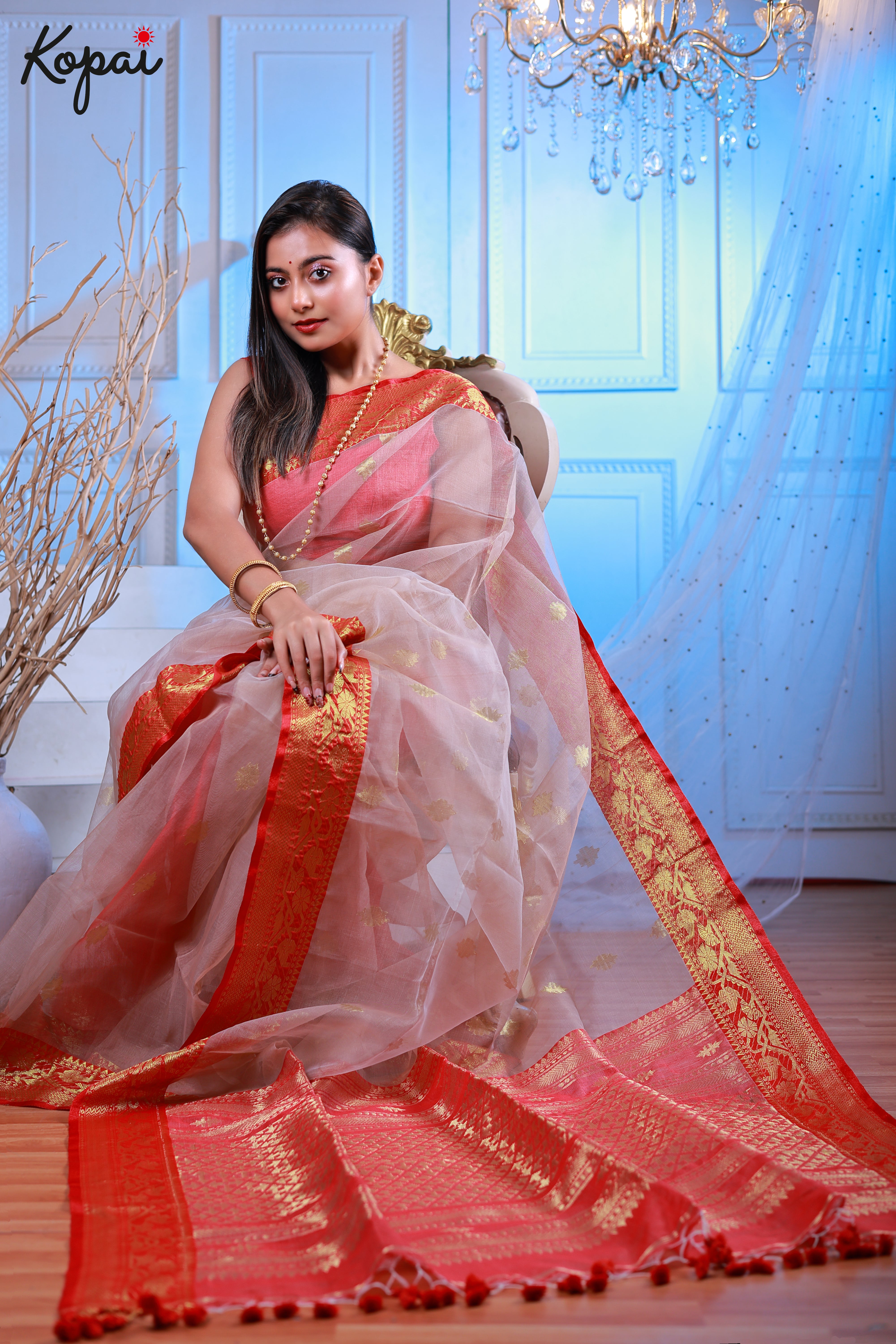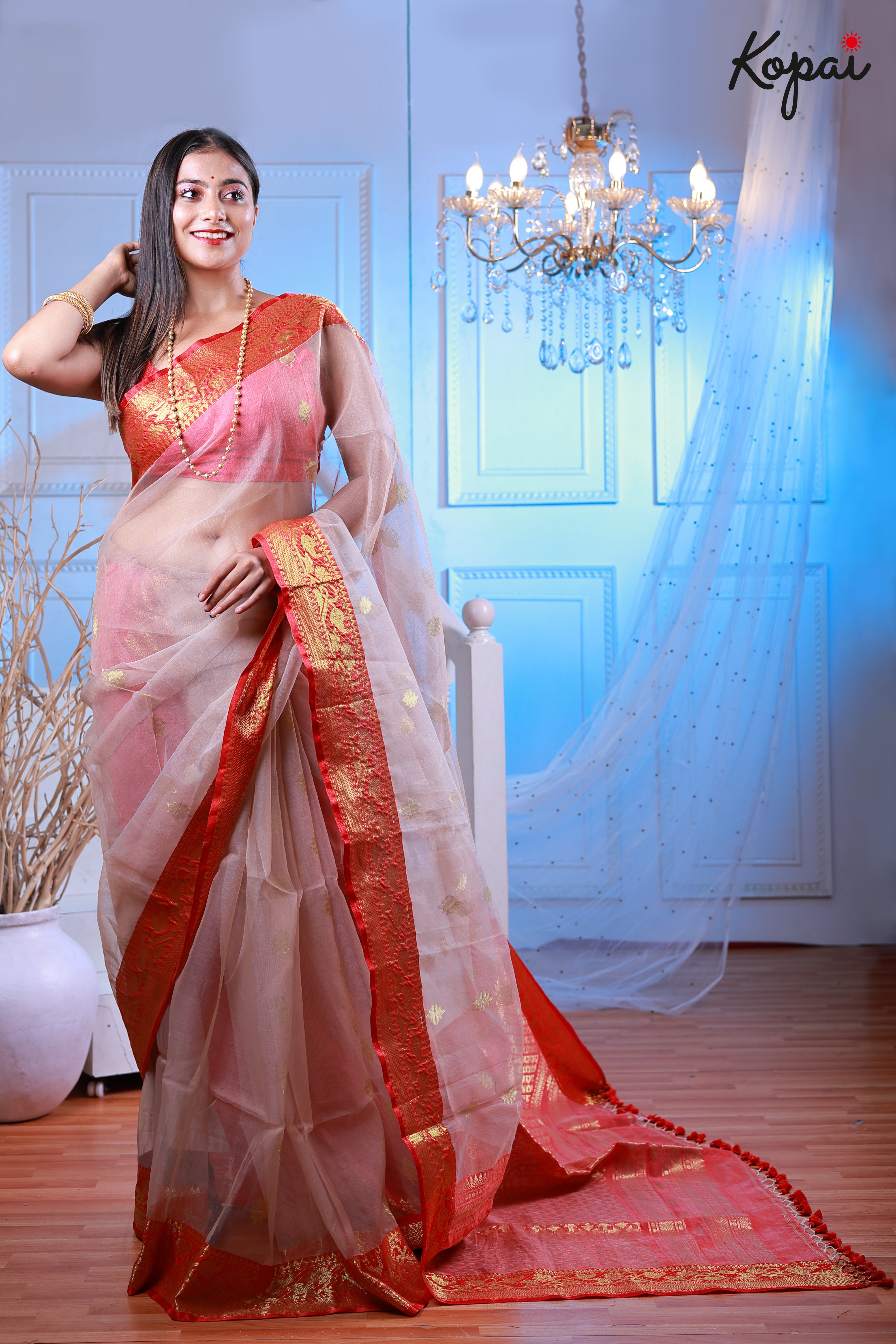 Elevate your wardrobe with the exquisite Beige and Red Muslin Benarasi saree, a masterpiece of traditional Indian craftsmanship. Made from... Read more