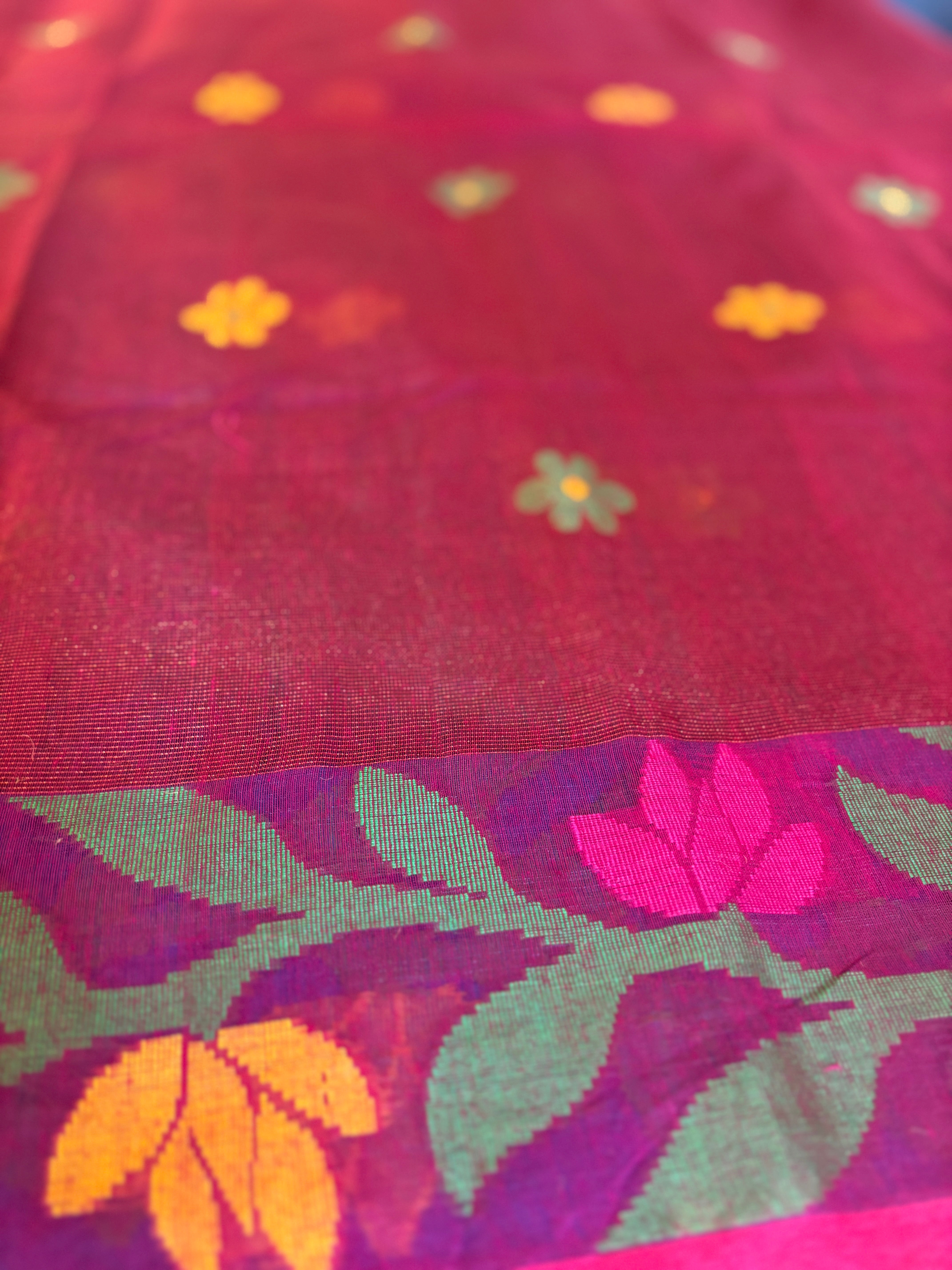 Design: Traditional Korat Jamdani motifs intricately woven by hand