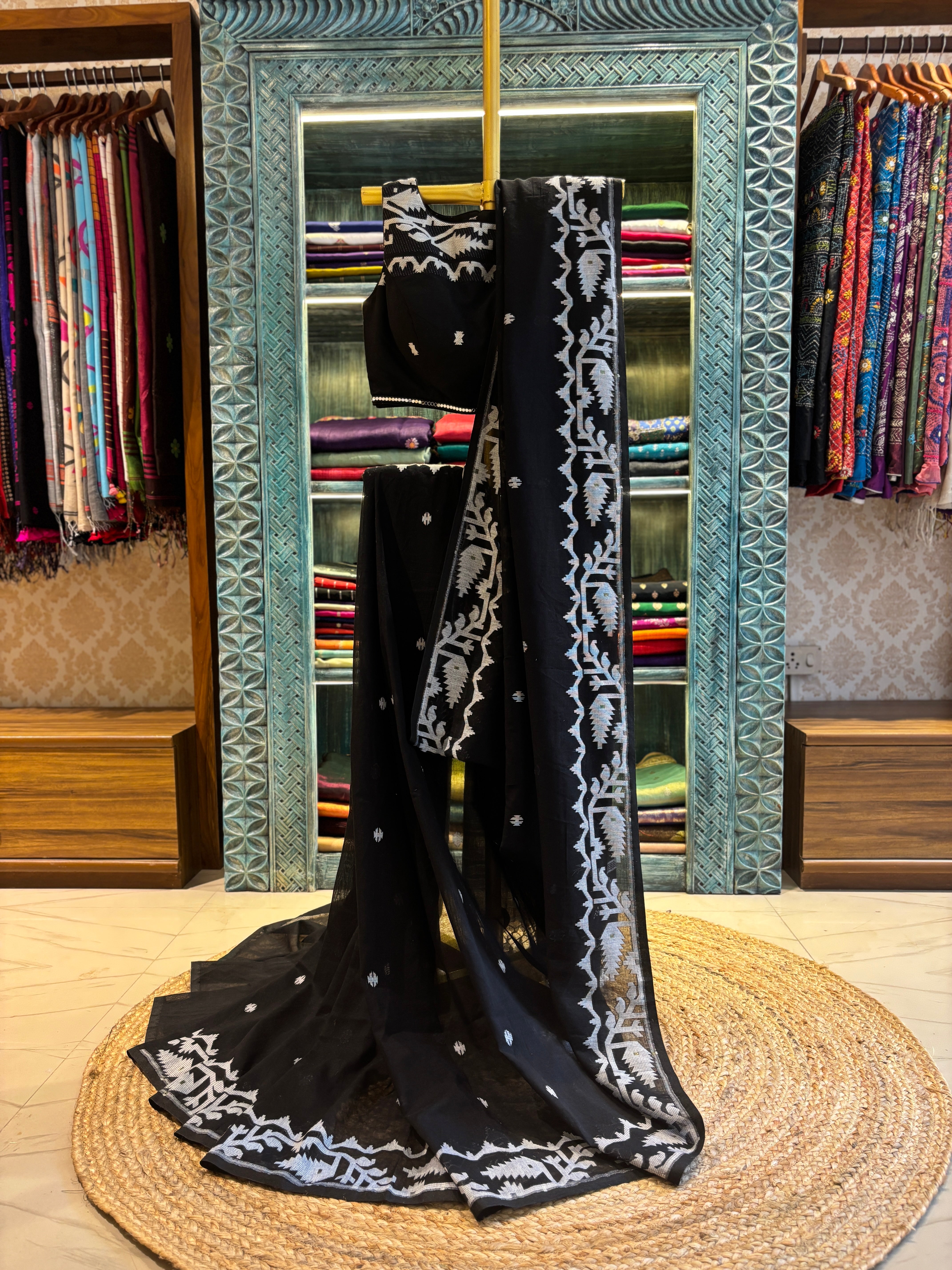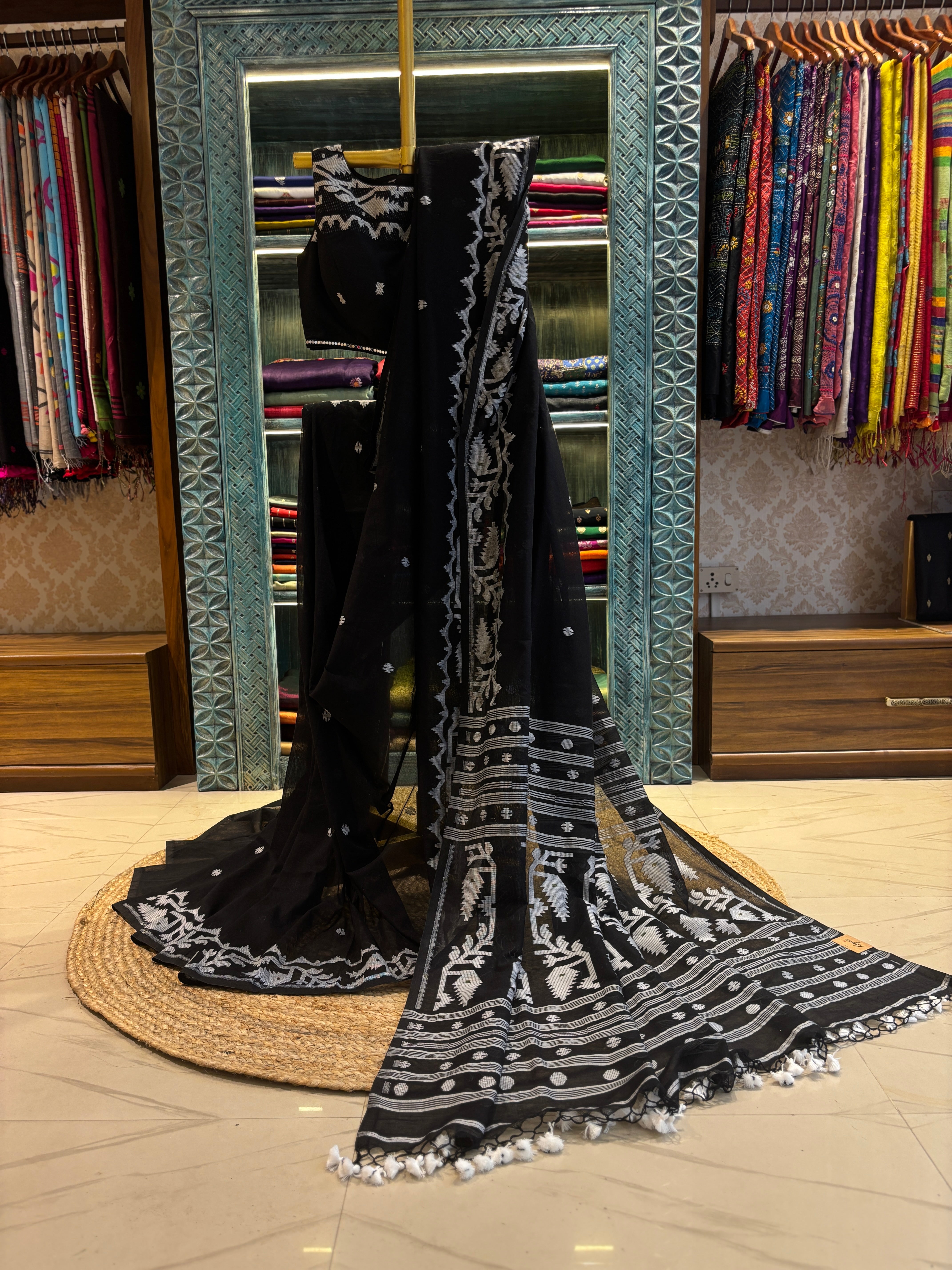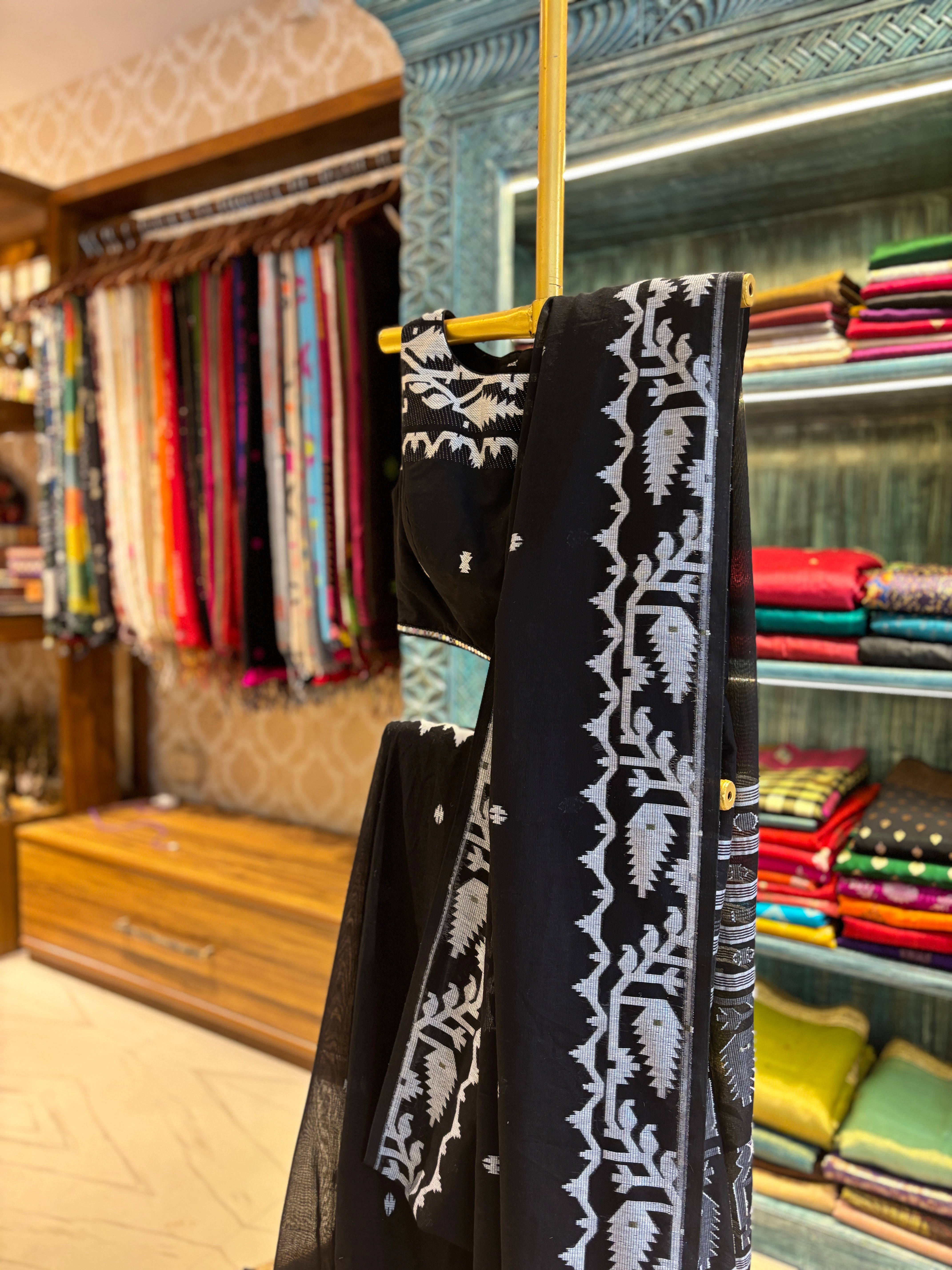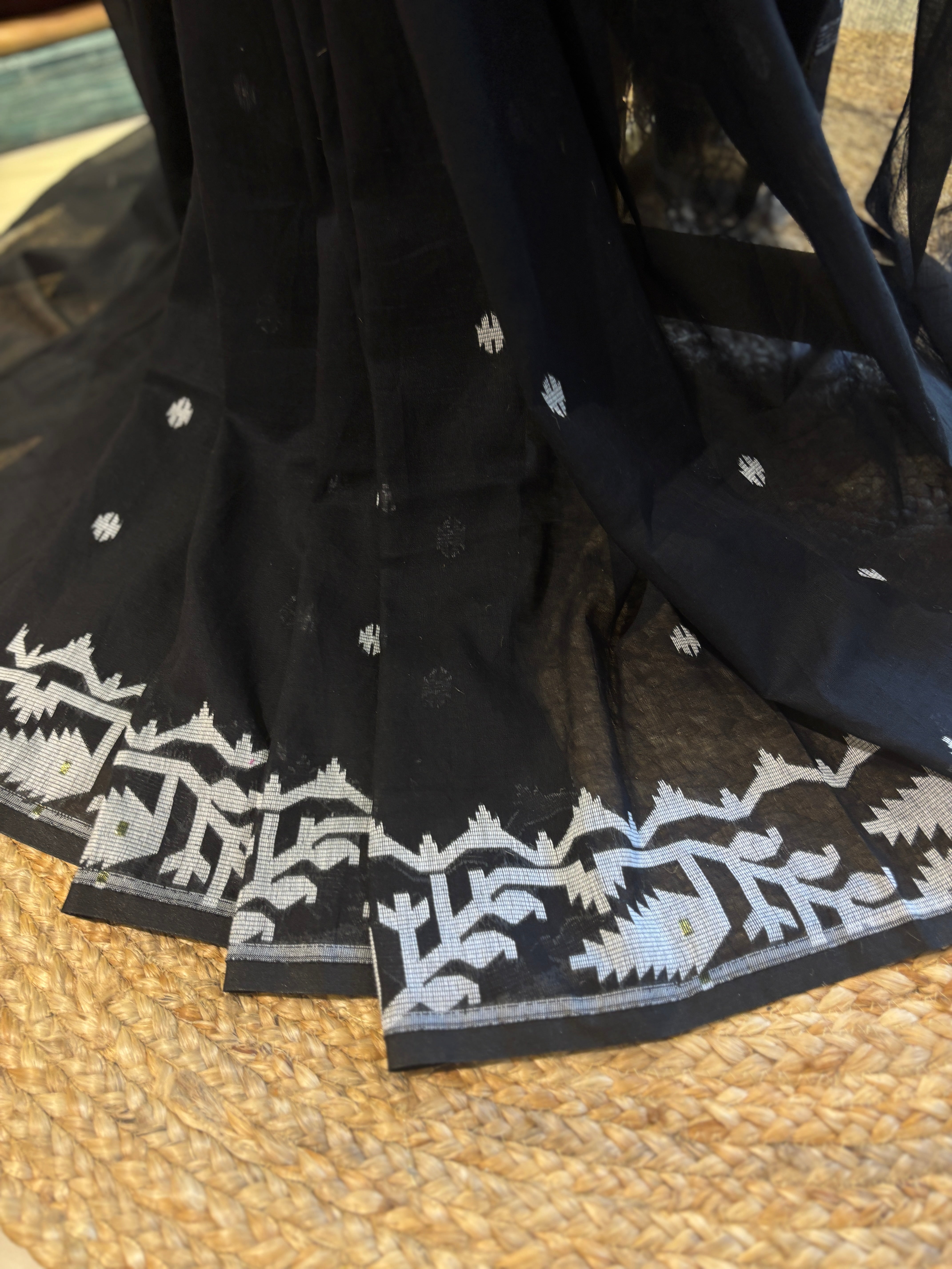 Bengal Handloom_ Black Cotton Korat Jamdani
