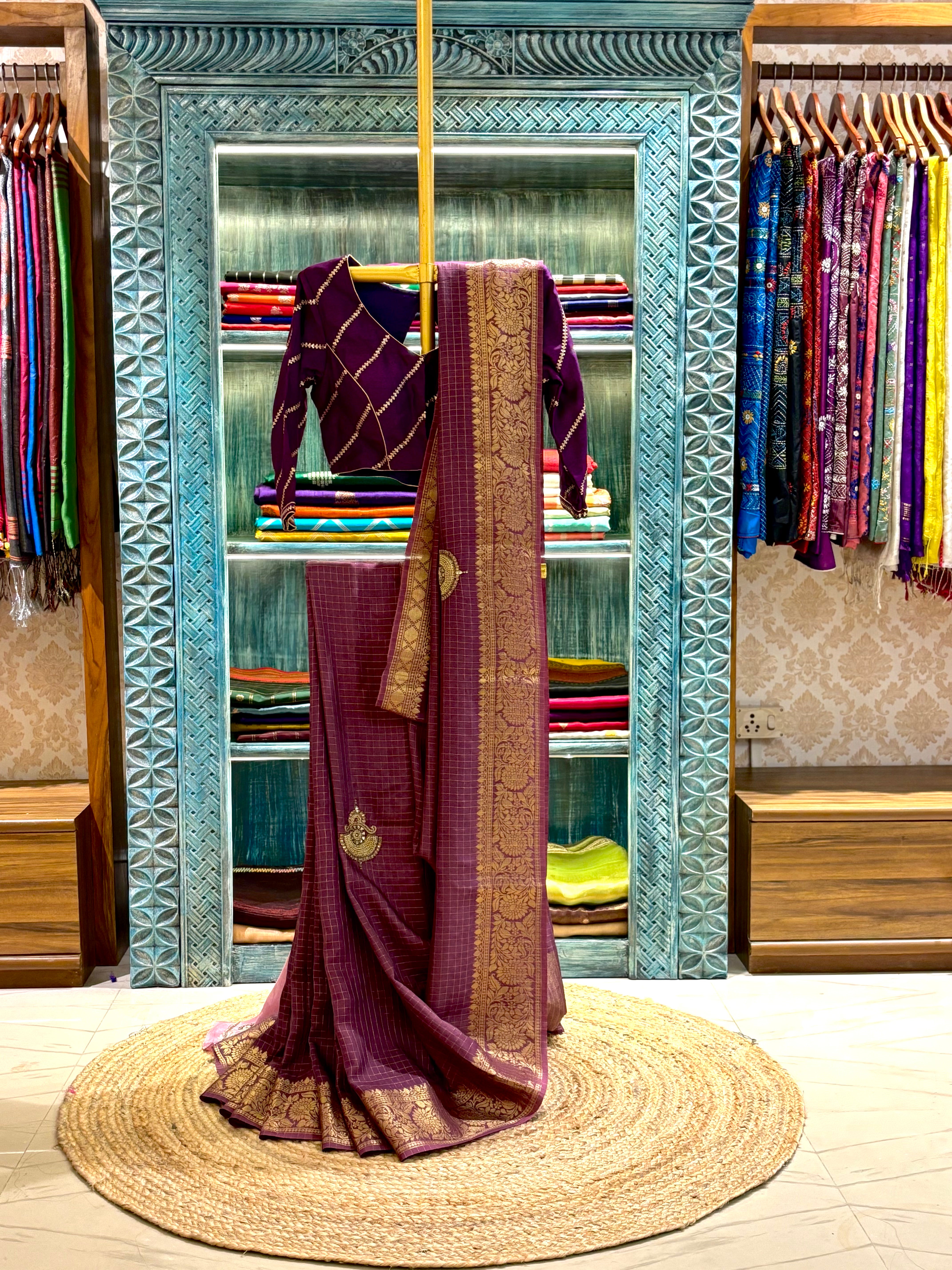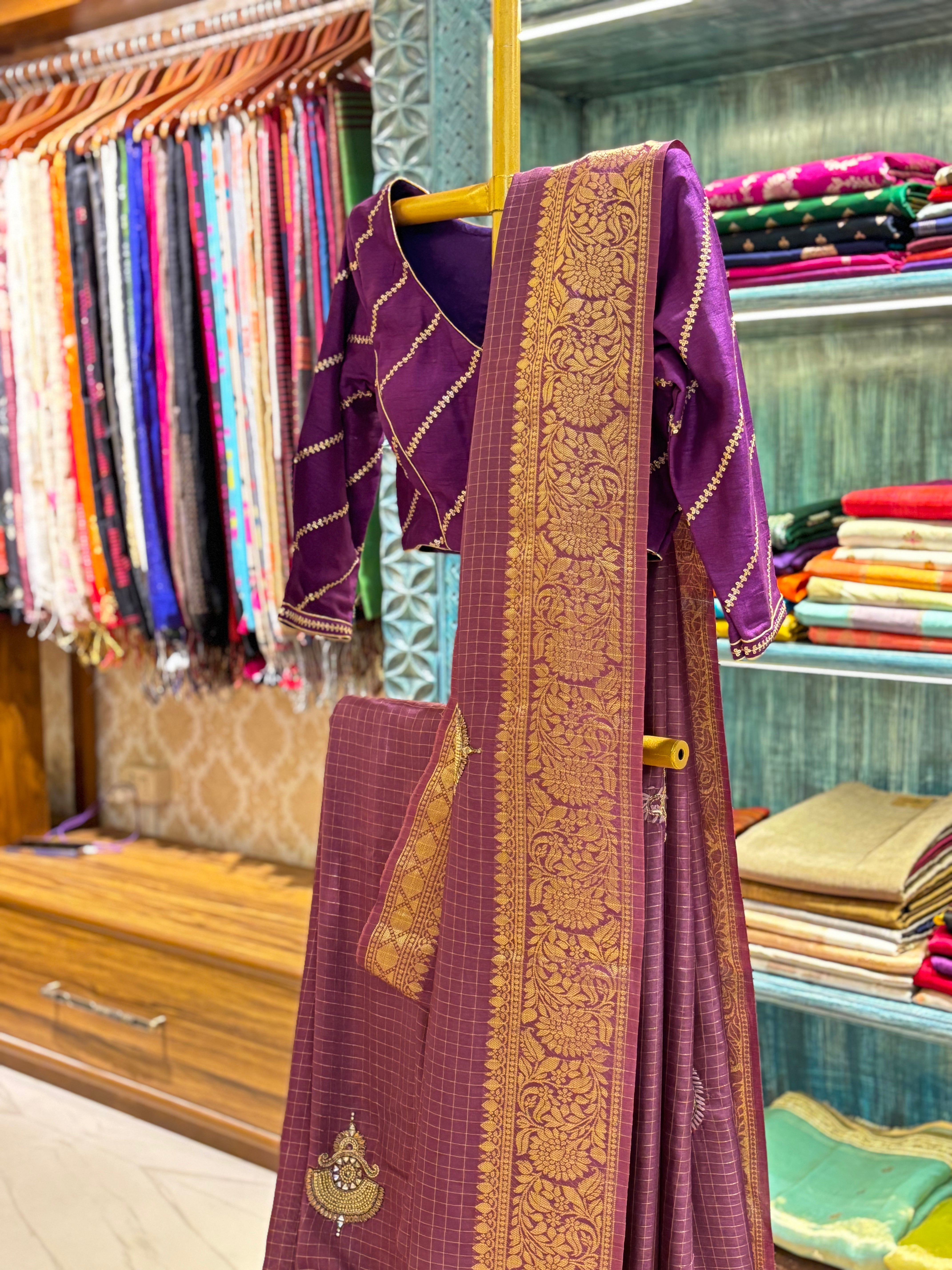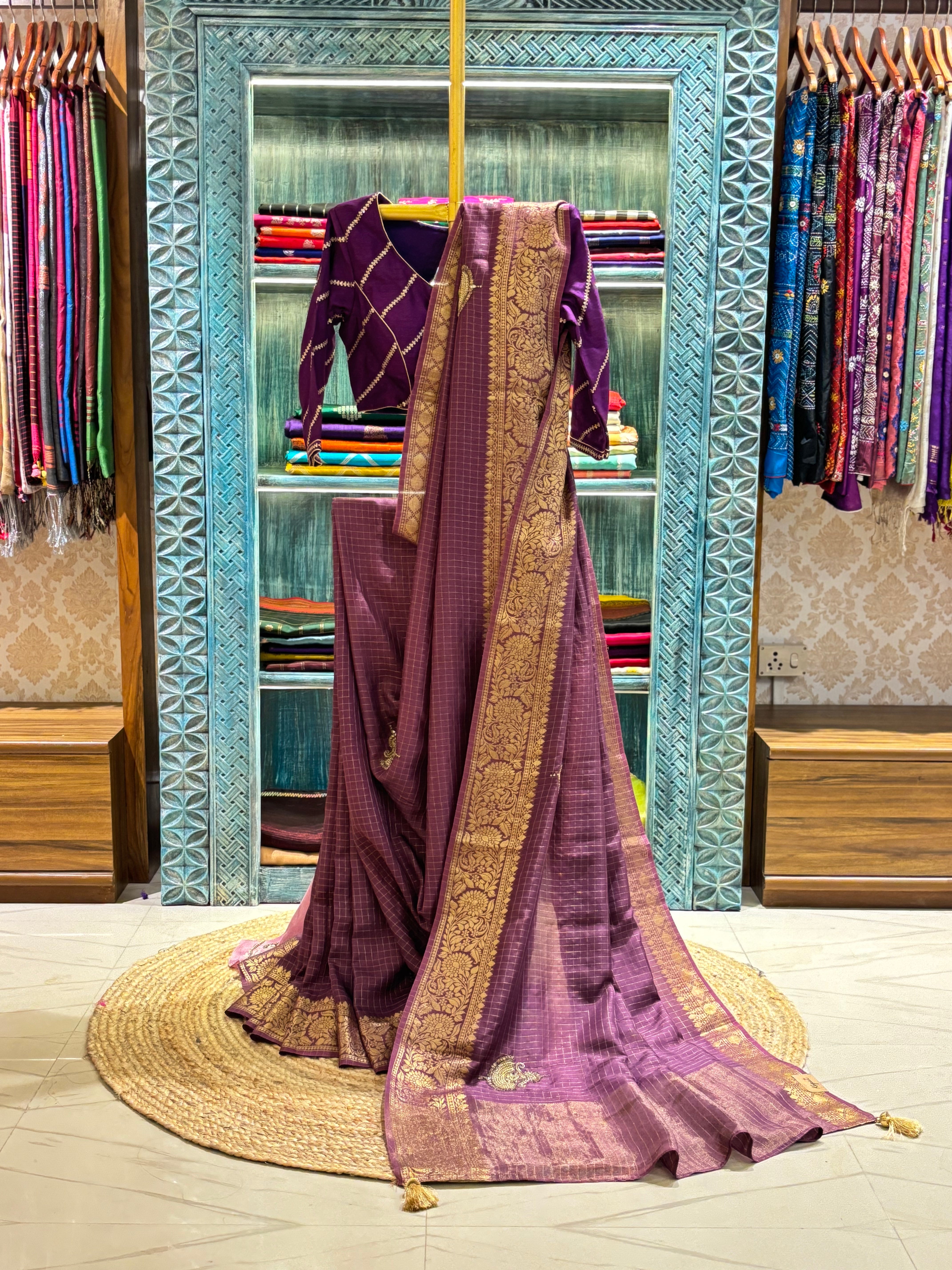Elevate your ethnic wardrobe with this stunning Purple Designer Crepe Saree, crafted to blend modern elegance with intricate craftsmanship. Made... Read more