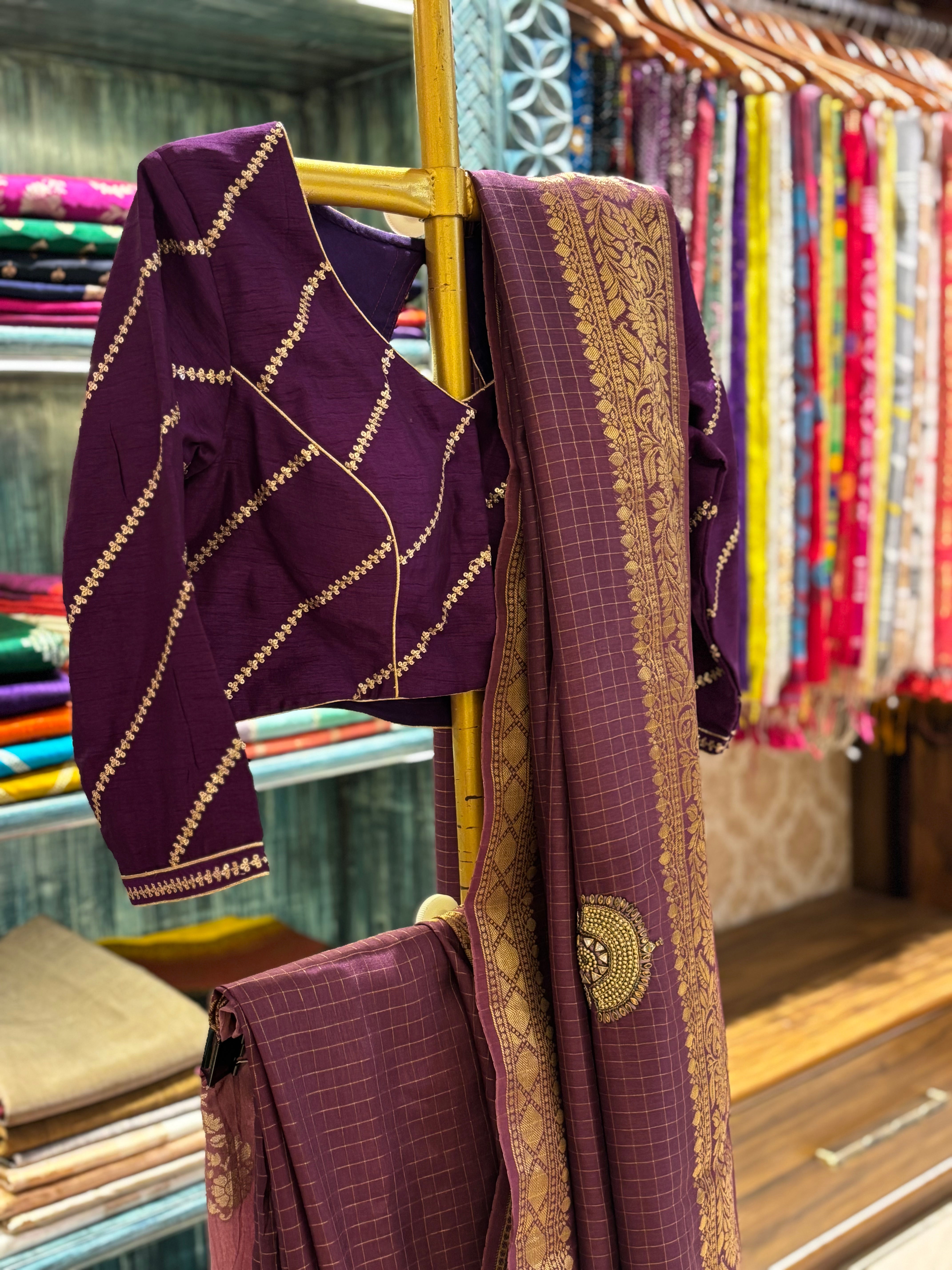 Elevate your ethnic wardrobe with this stunning Purple Designer Crepe Saree, crafted to blend modern elegance with intricate craftsmanship. Made from premium-quality crepe fabric, the saree offers a smooth, graceful fall that enhances every movement.