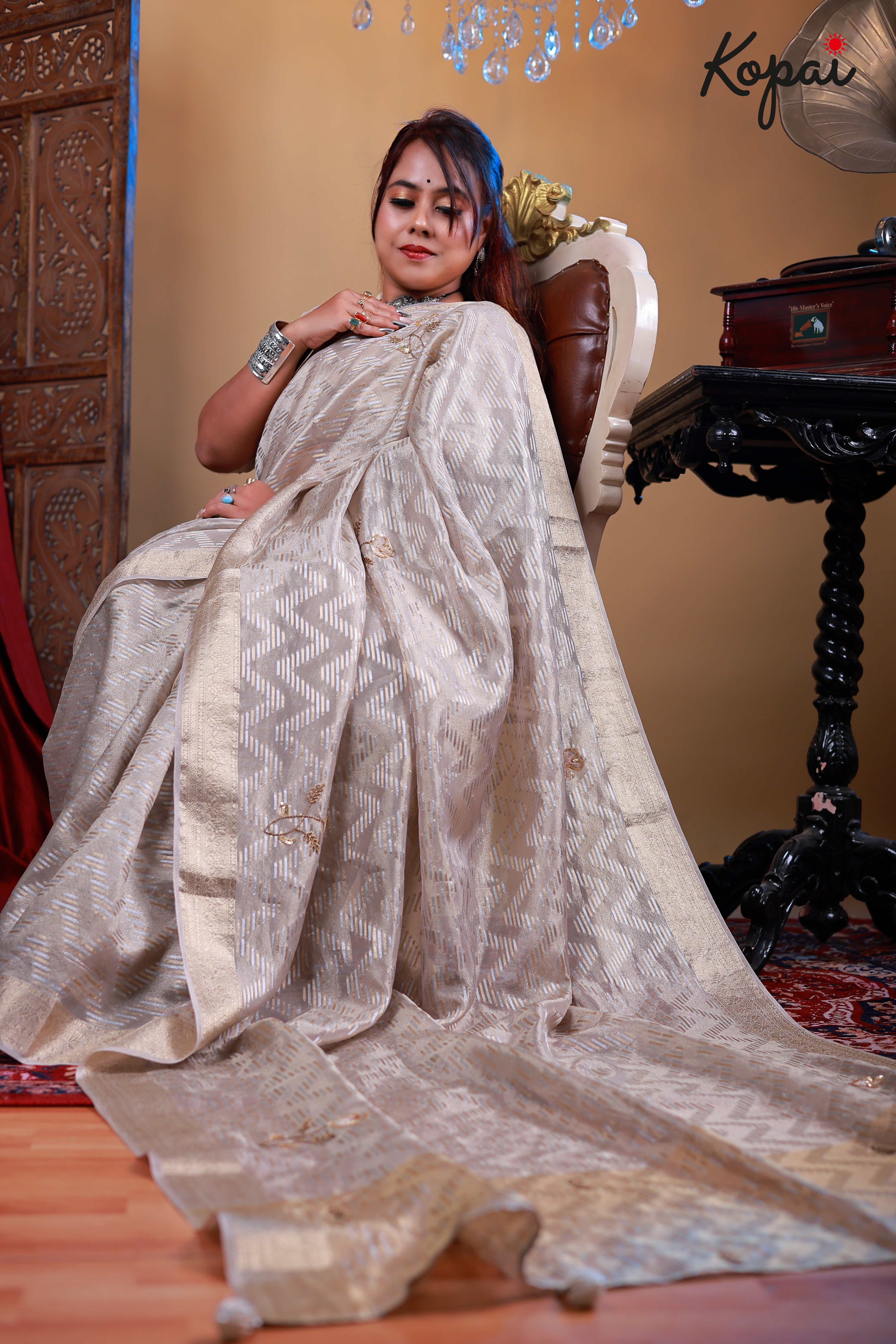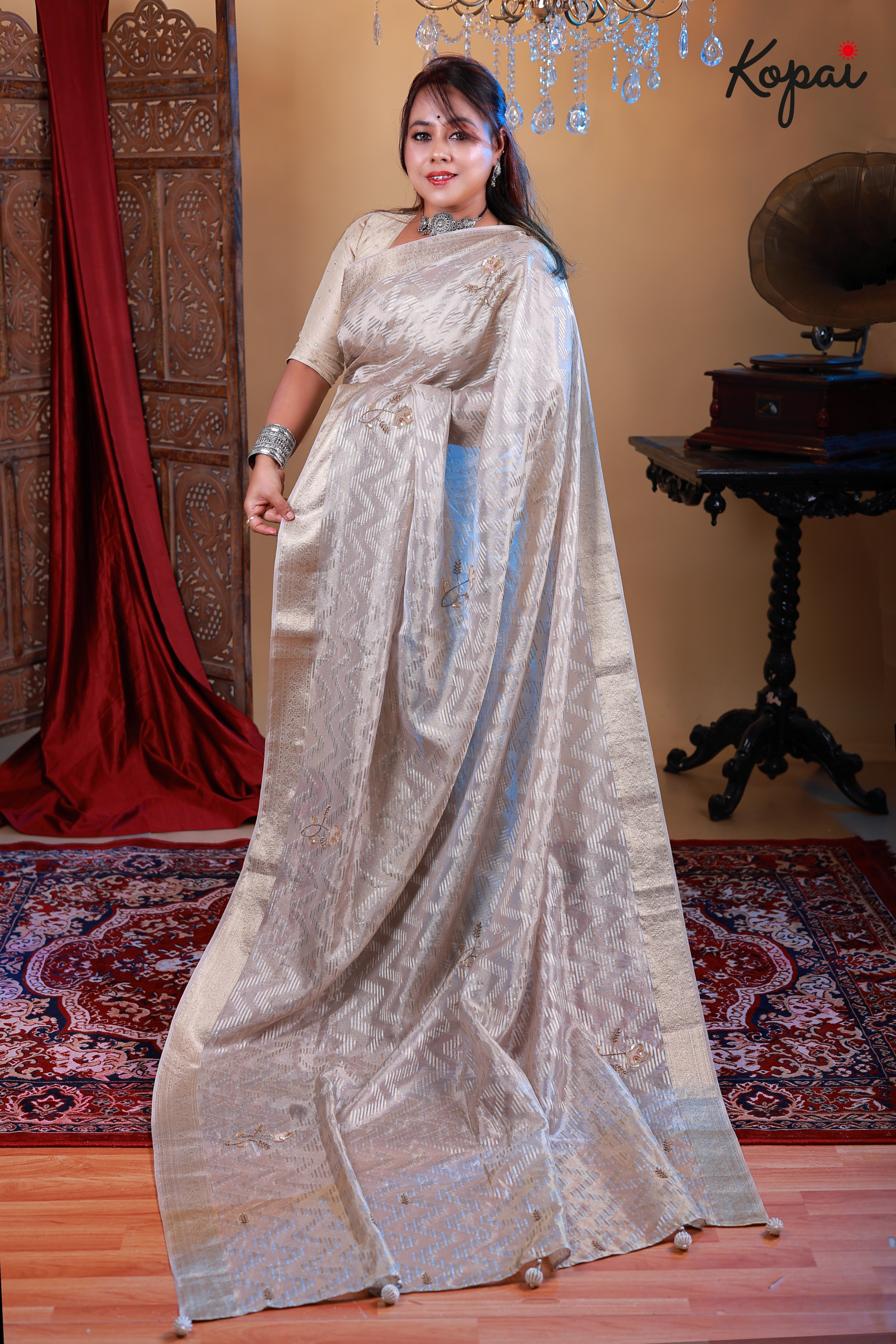Tissue golden and silver saree