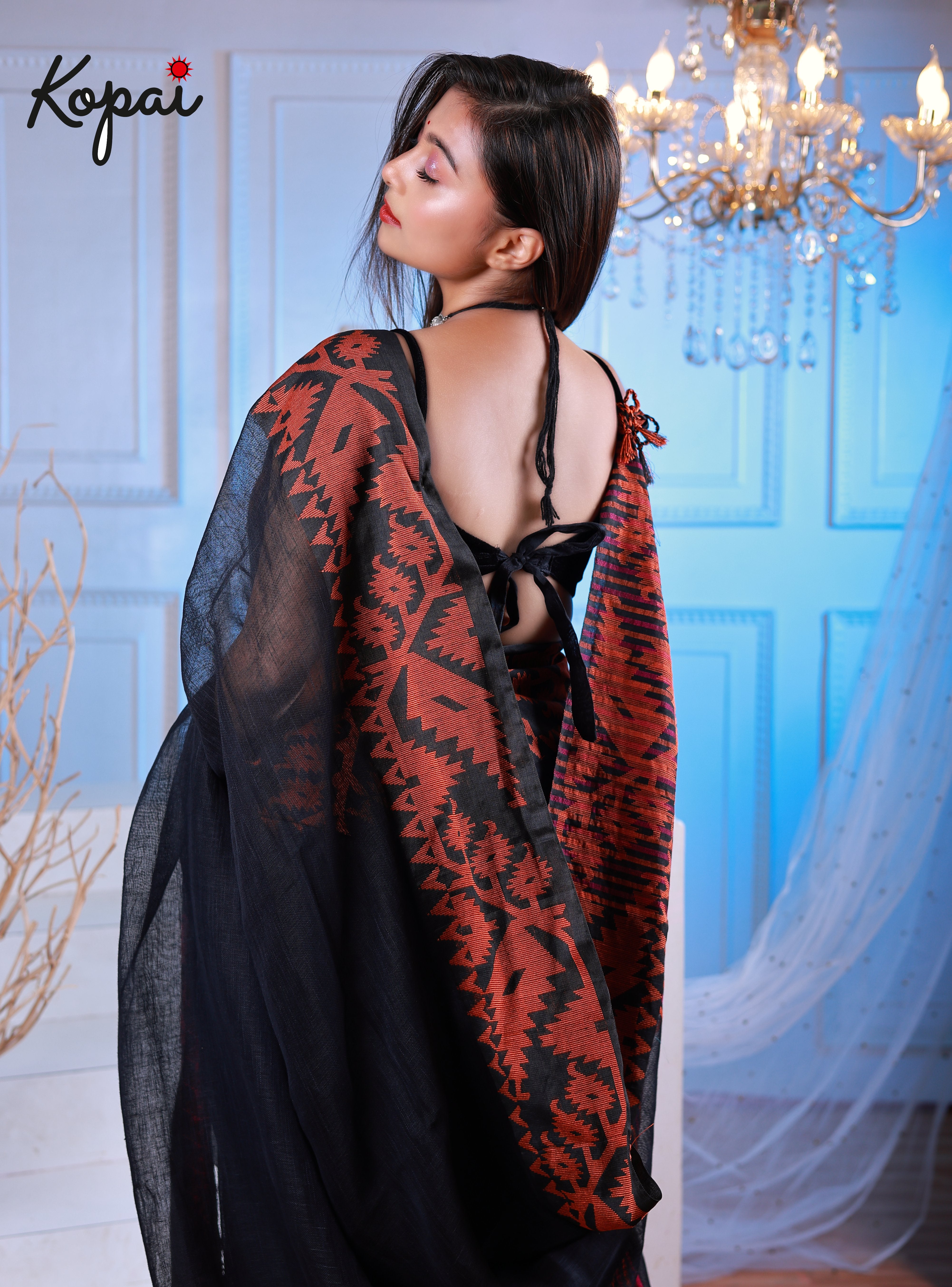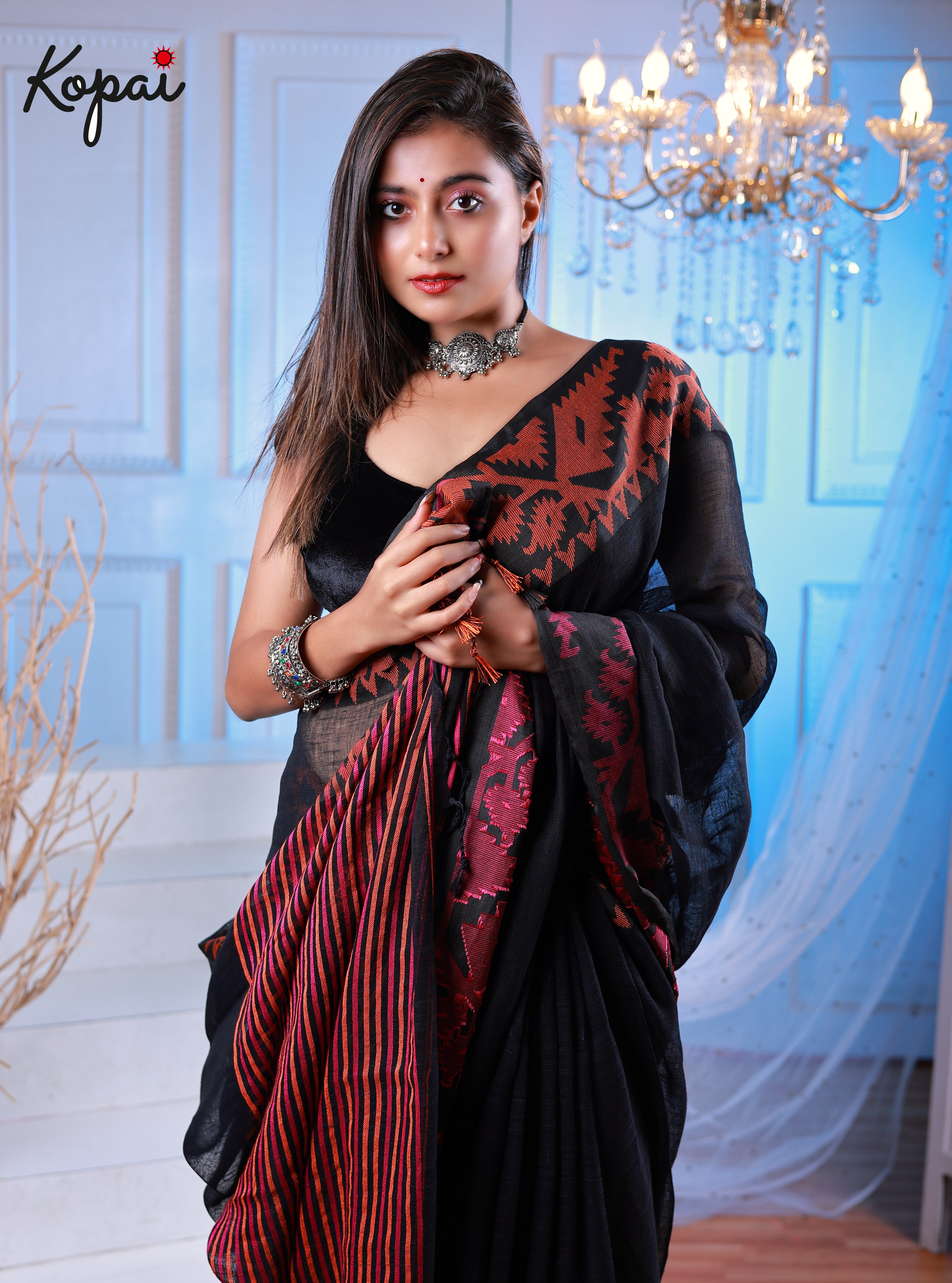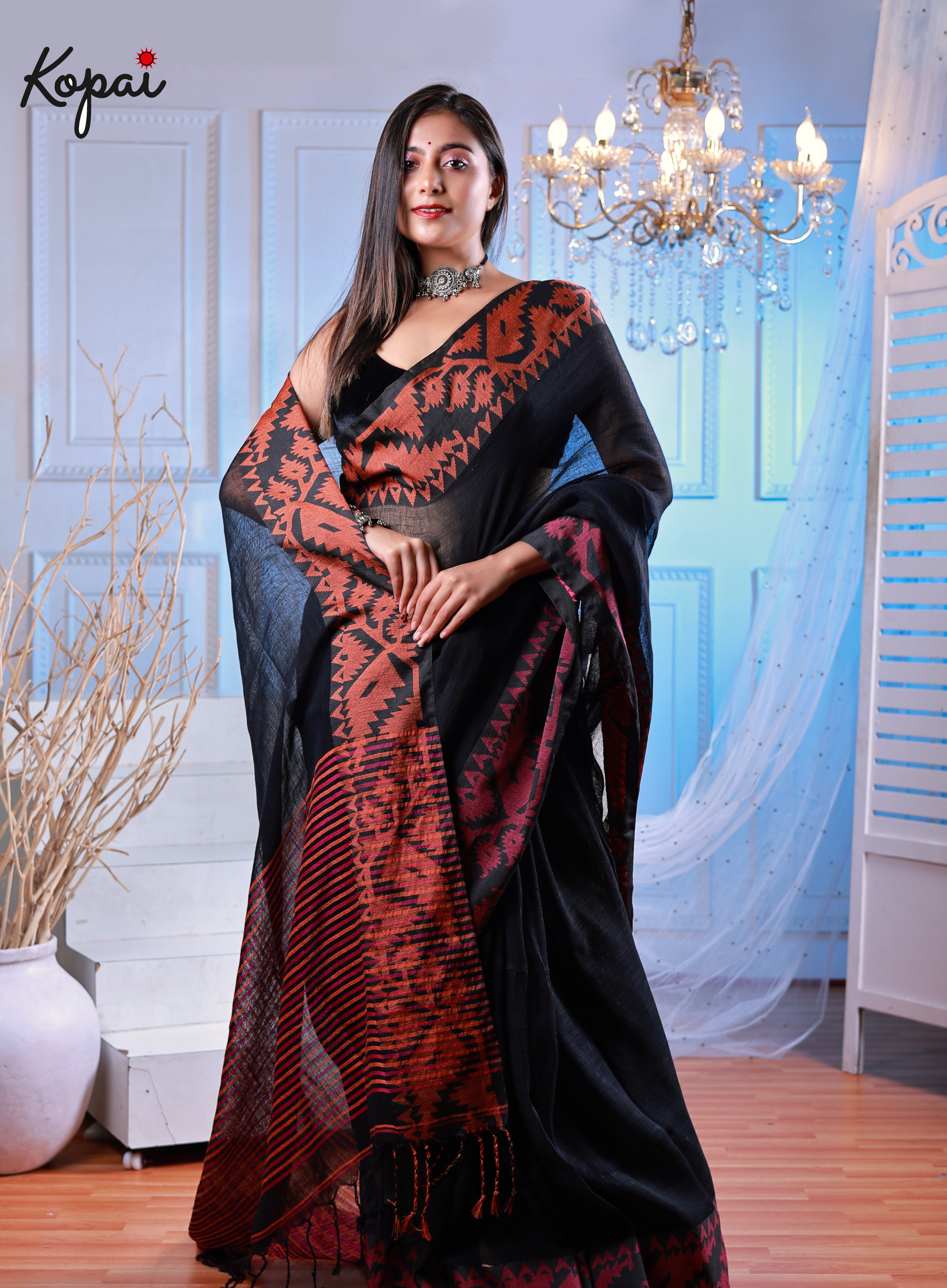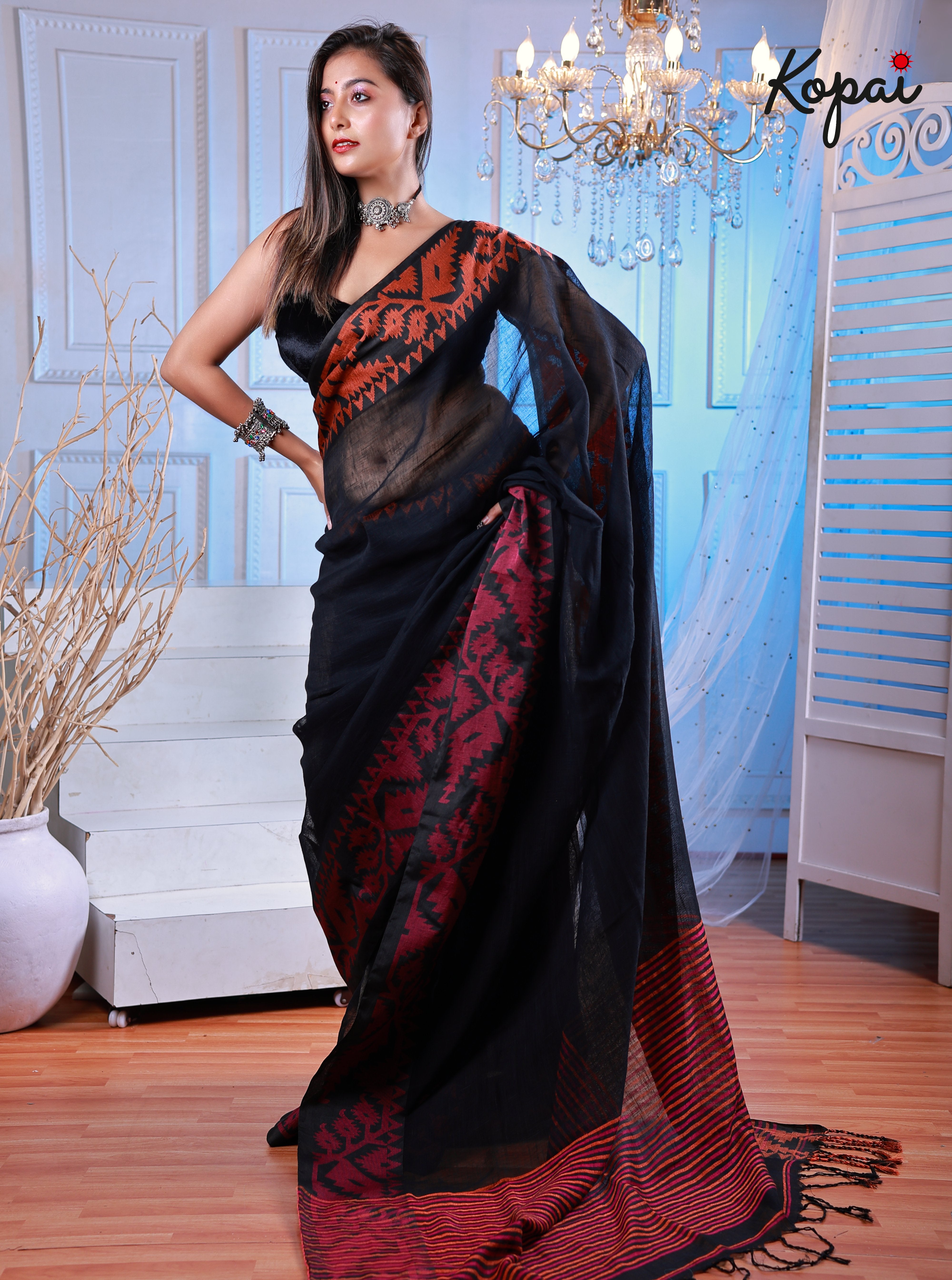 Korat linen black saree