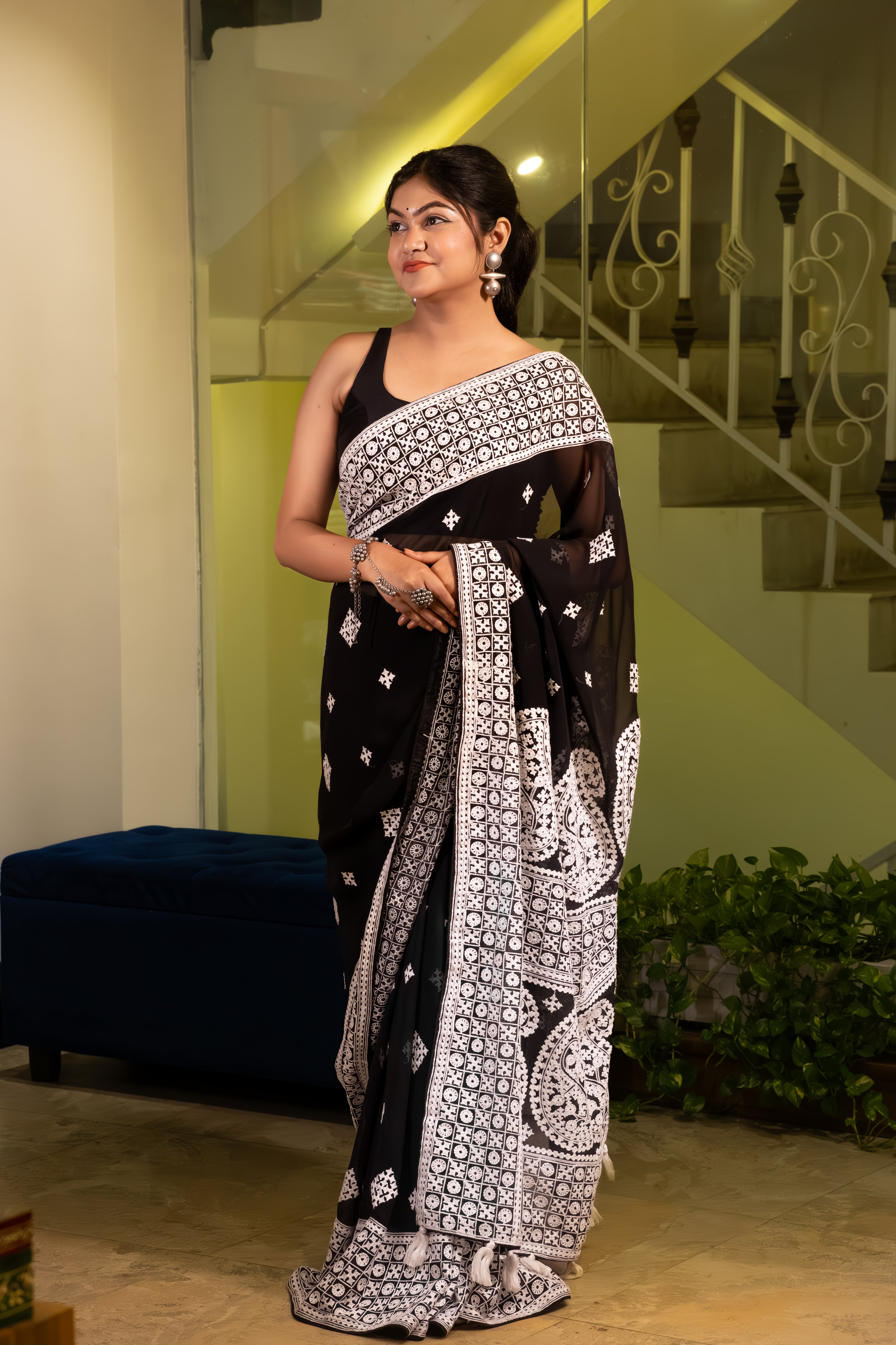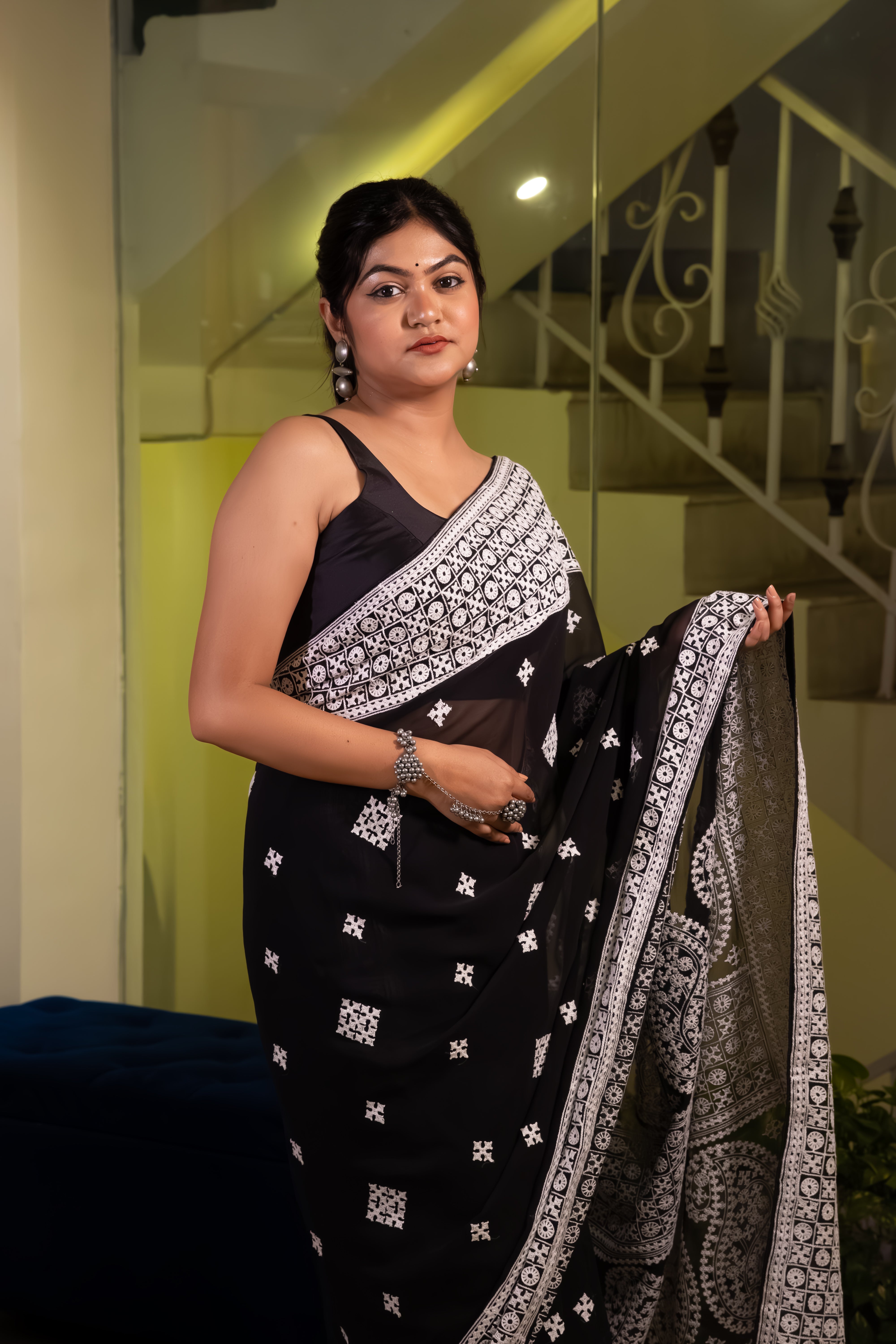 Georgette embroidery sarees are a perfect blend of elegance and comfort, crafted from lightweight and flowy georgette fabric that drapes... Read more