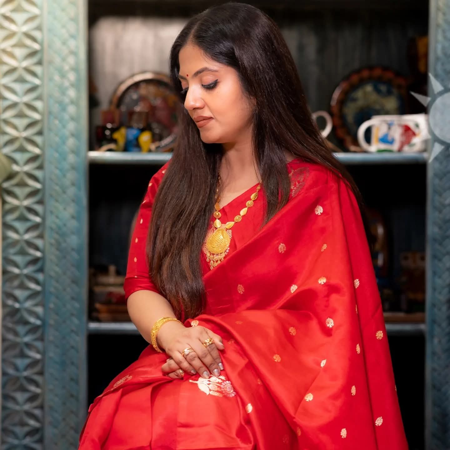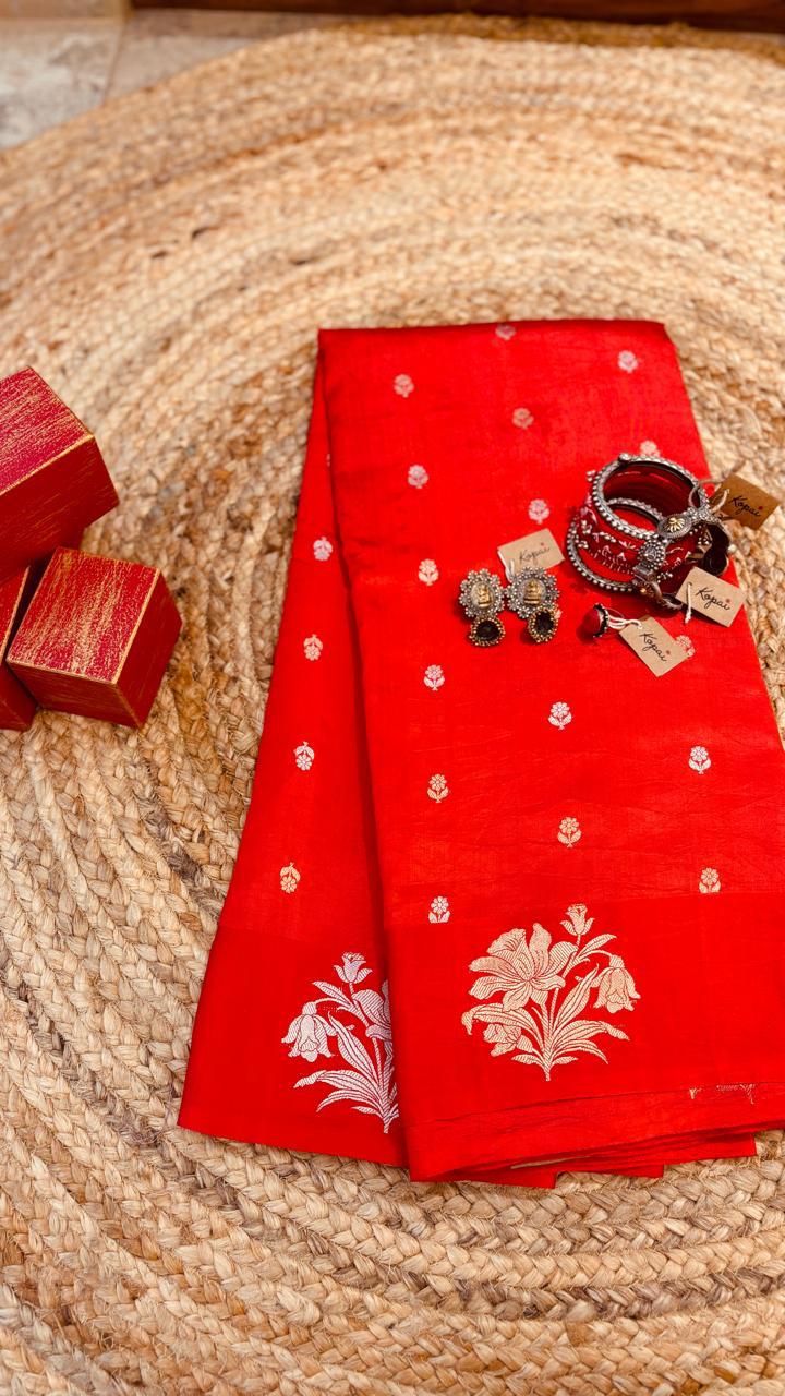 Pure red mango silk saree