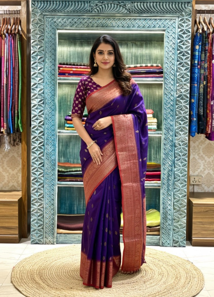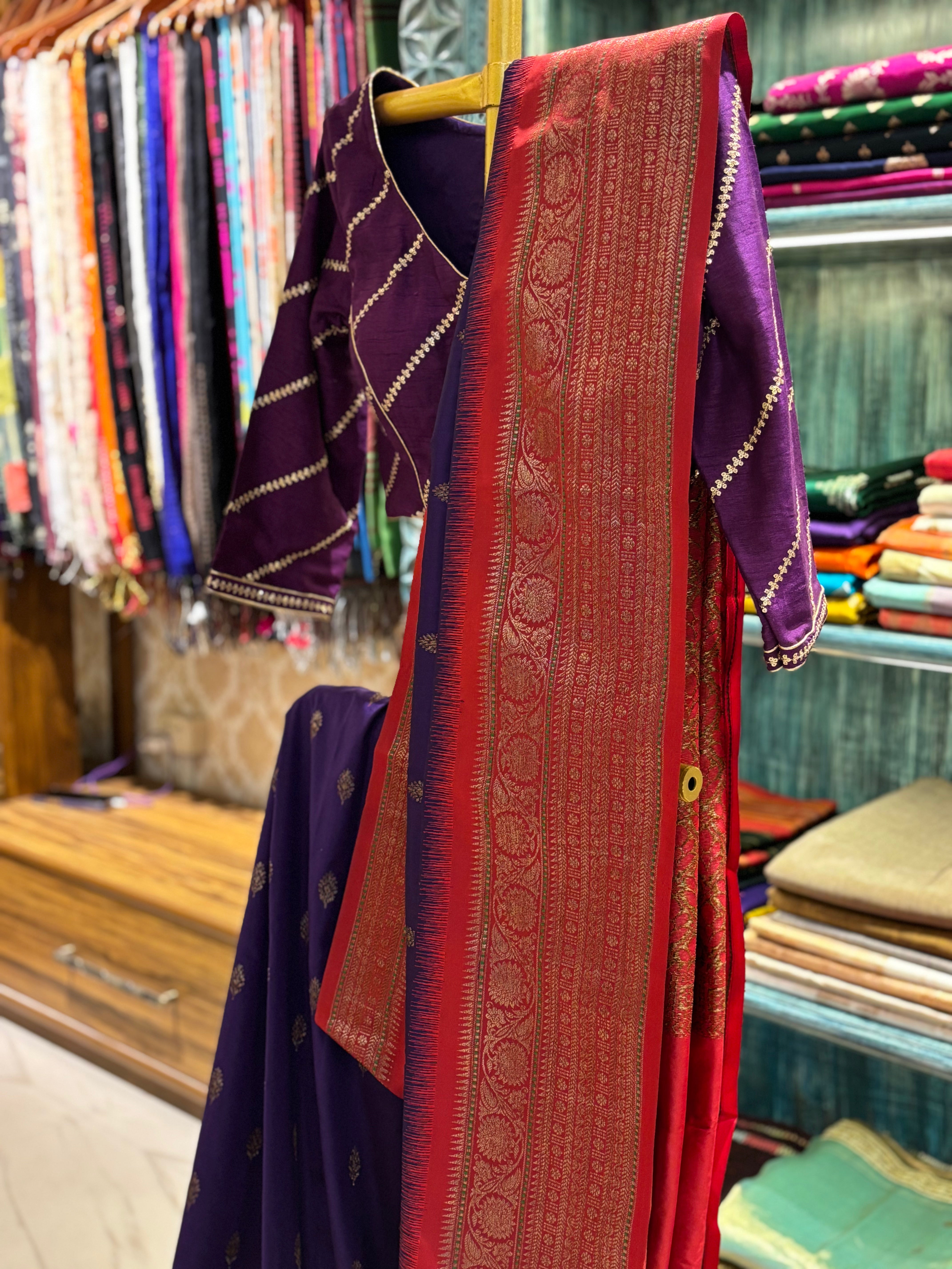 Silk _ Pure Semi Purple coloured Katan Benarasi