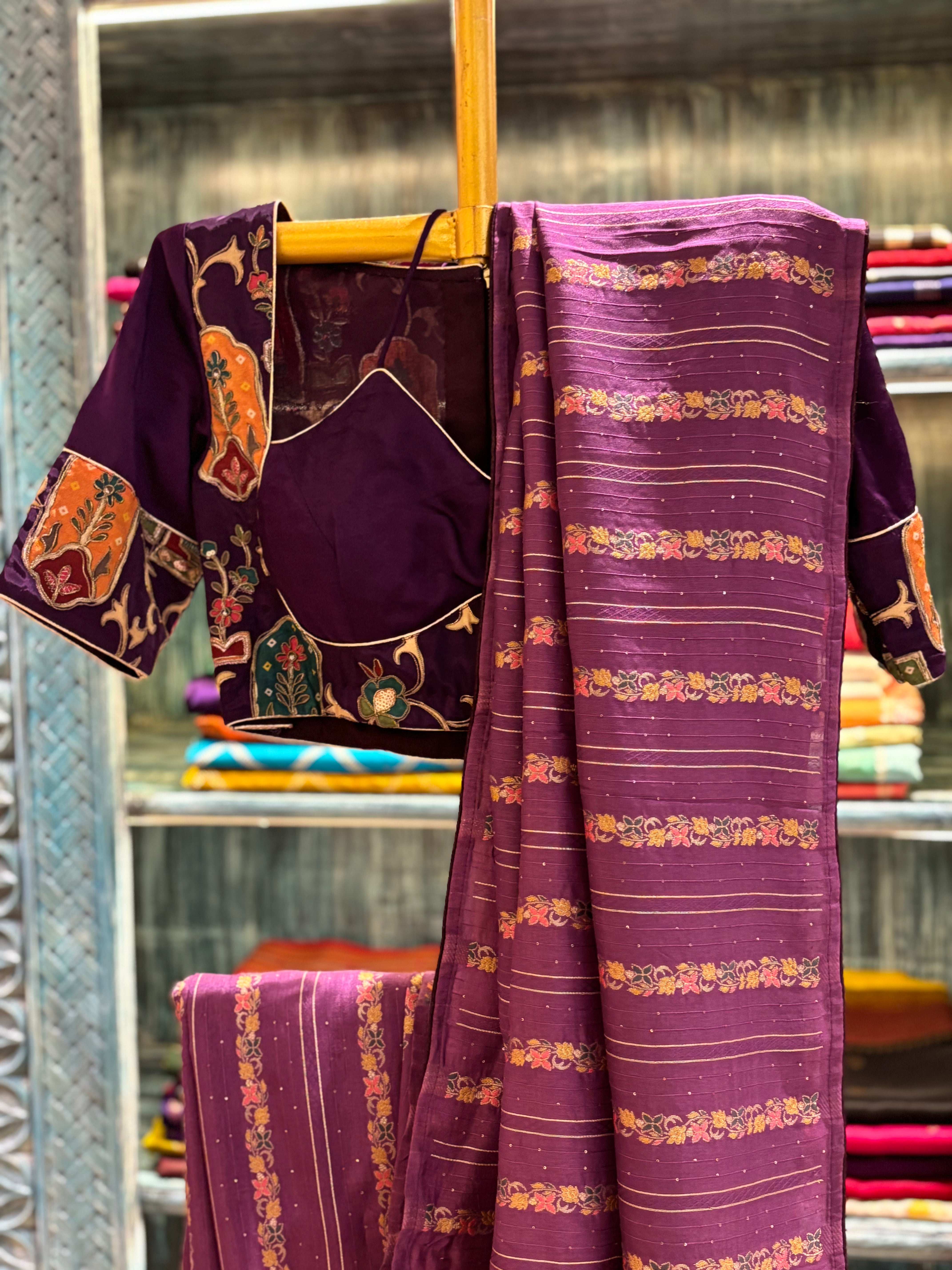 Elevate your elegance with this premium Purple Dola Silk Saree, beautifully adorned with intricate golden motifs that add a touch... Read more